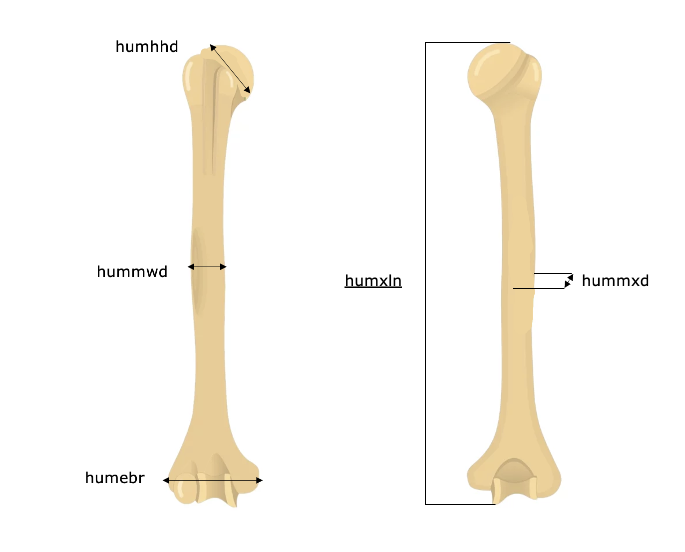 | Upper limb | Humerus | humxln | Maximum length |